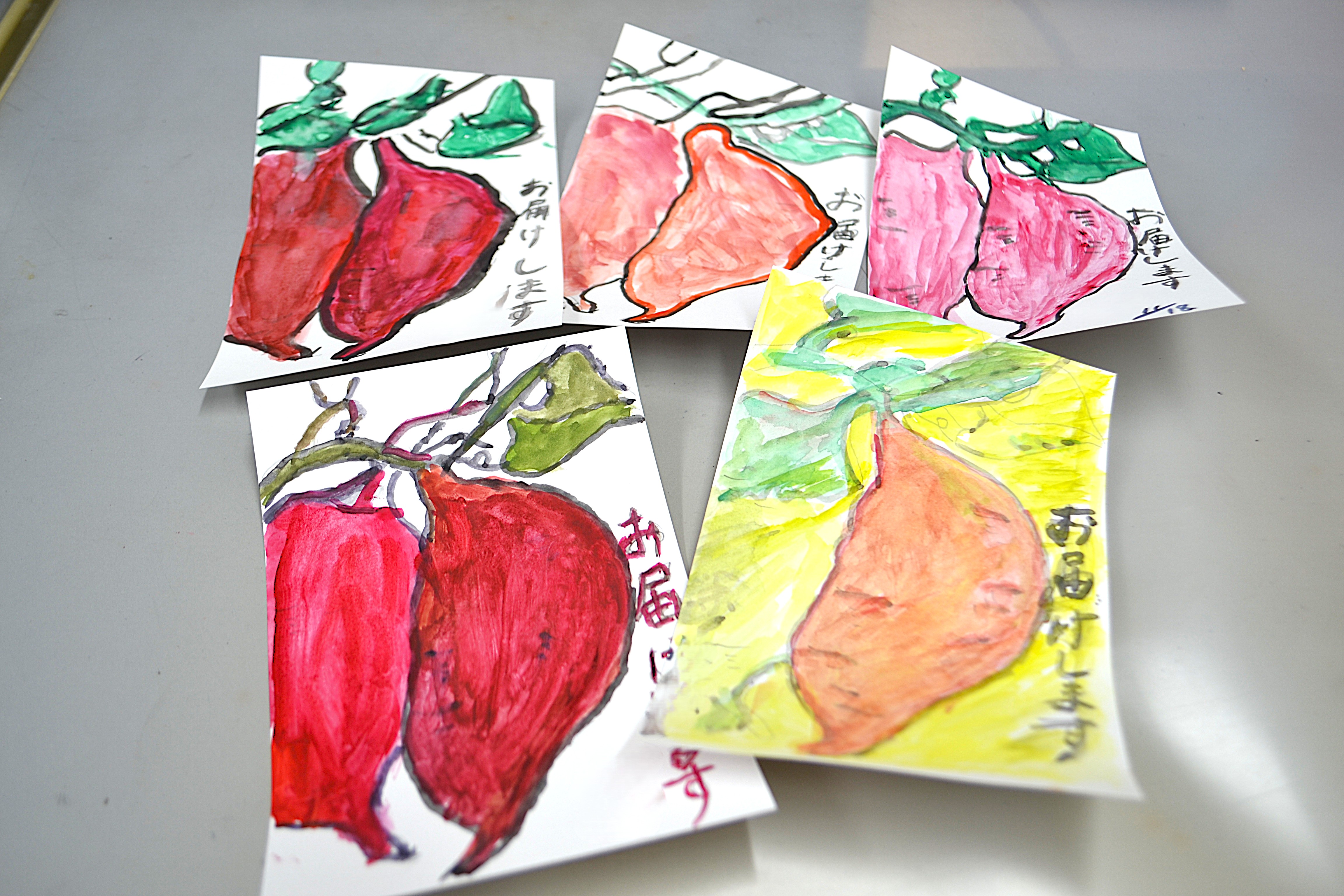 今回はサツマイモを描きました。どれも丸々と大きく実っていますね。