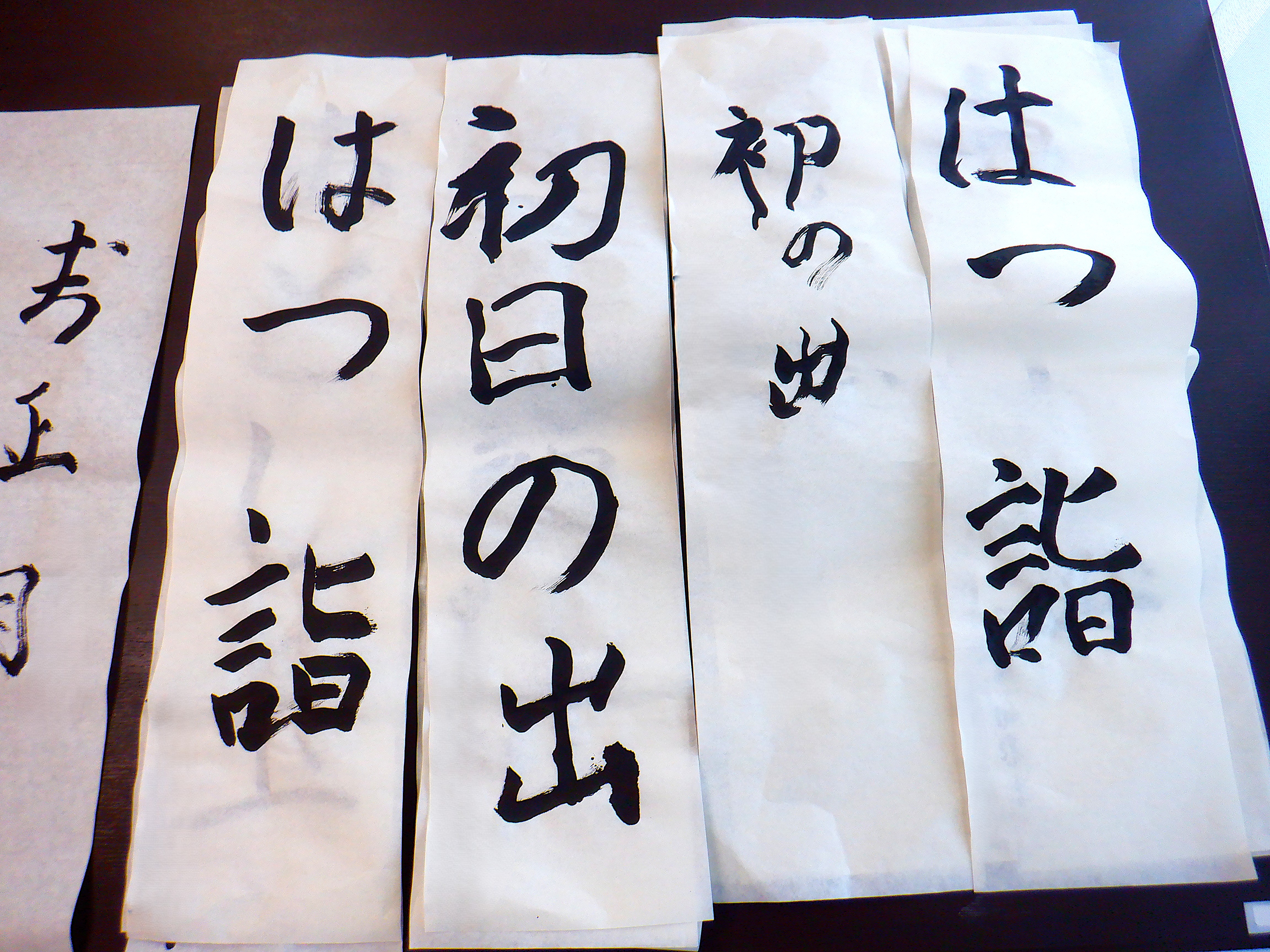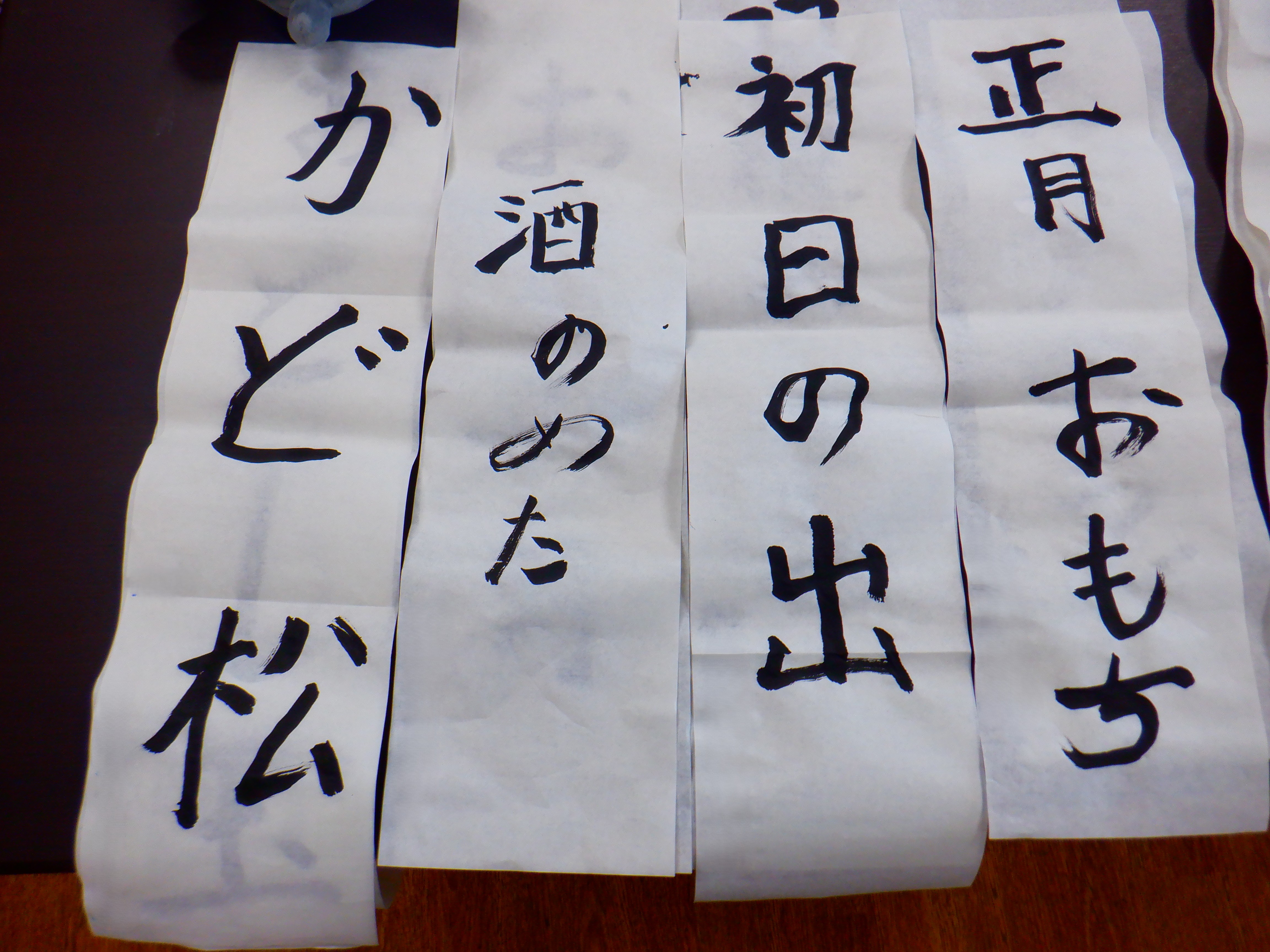新年をお祝いするために「かど松」や「初日の出」、「はつ詣」など書きました。