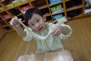 食べ物ができる過程により興味や関心を持てるように『小麦粉粘土』をしました。
