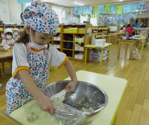 力加減を工夫しながらこねたり、「美味しくなーれ!」と呪文を唱えながらこねたりと