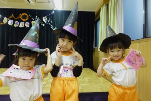 ハロウィン会では、各学年それぞれ自分で製作したものを身に付けました♪