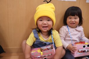 0歳さん、1歳さんはお部屋でお菓子やプレゼント探しをしましたよ☆