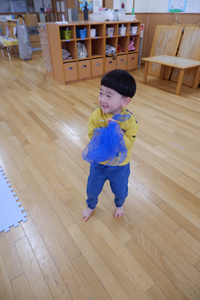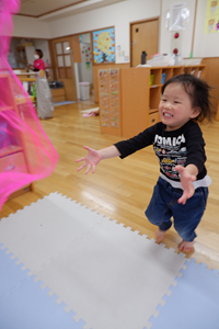 「よーいどん!」の合図で勢いよくかけだし、落ちてくるスカーフを落ちないようにキャッチ☆