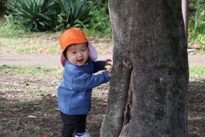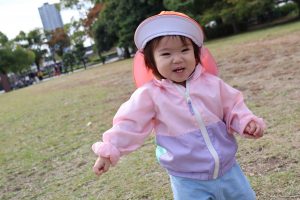 公園につくと芝生でハイハイをしたり、歩いたり走ったりして