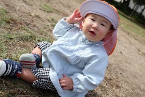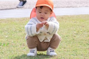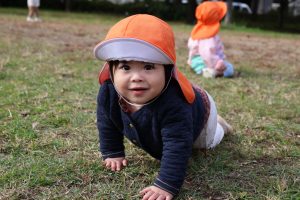 公園につくと芝生でハイハイをしたり、歩いたり走ったりして