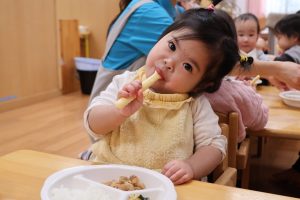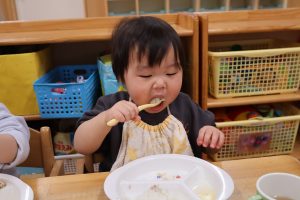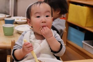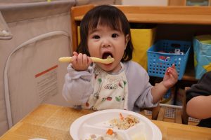 自分でスプーンを持ってしっかりと食べることができるようになってきました!