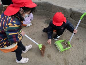 くま組さんは、花壇の周りの掃除をしました。