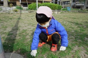 木の根元や、花壇の周りによく草が生えていることに気付いて自然と集まる姿が見られました。