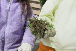 軍手を使って、草抜きや落ち葉拾いに挑戦です!