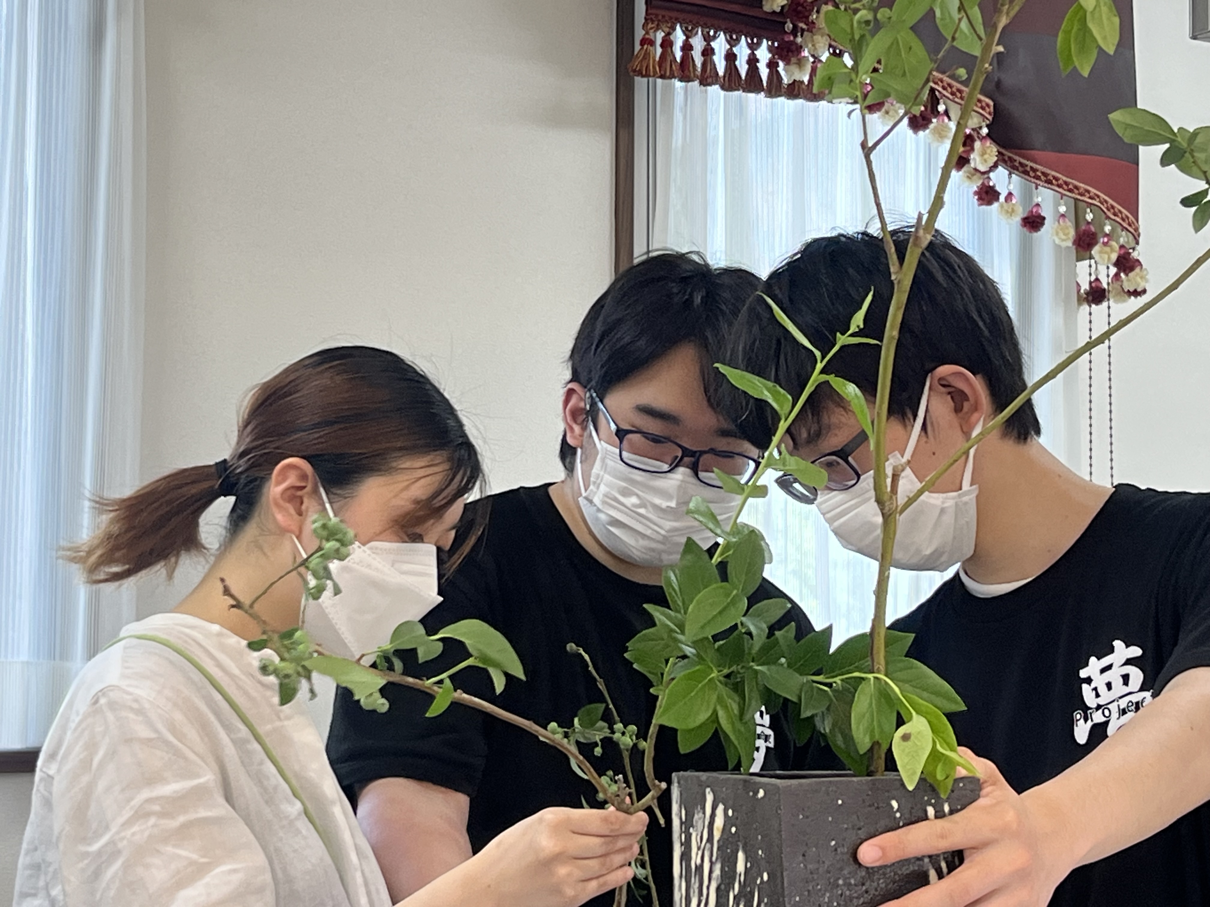 前日のうちに学生さんが買いに行ってくださっていたお花を、