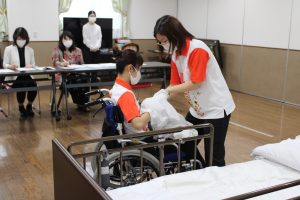 また自分自身の介護技術を見つめ直す良いきっかけにもなっていて、皆忙しい業務の合間に練習して挑んでいました。