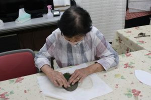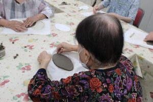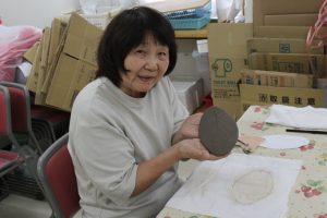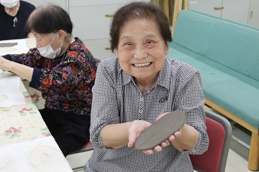 先生のお手本をもとに『葉っぱ型のお皿』をつくりました!