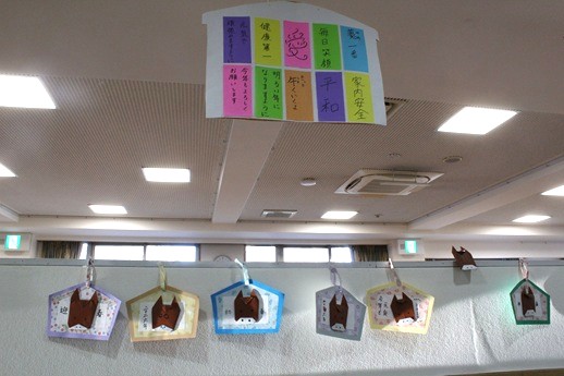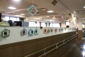 たくさんの方に参加いただき、完成した作品はデイフロアの廊下に飾っています。