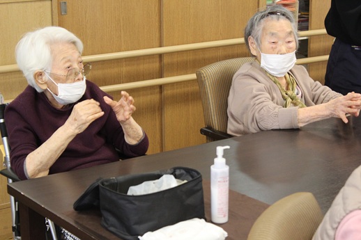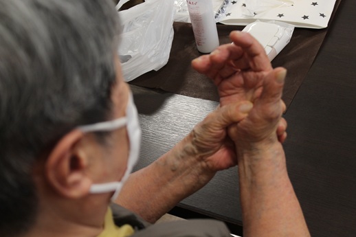 来ていただき、手の運動やセルフハンドマッサージを