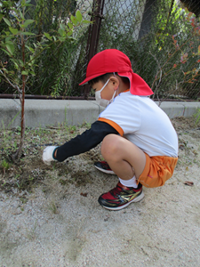 2回目のクリーンキッズ活動は園庭の雑草抜きを行いました。