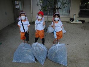2クラス合わせて5袋分の大量の雑草を抜いてくれました!