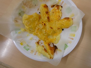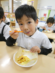 みんな思い思いに作り上げ、給食室の先生に「お願いしますー!」とお渡しすると数分程経ってからあれれ?なんだかいい匂いが…。