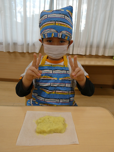 「どんな形にしようかな?」「あれ?意外と難しいな…」といろいろ考えながら感触も楽しみながらスイートポテト作りを楽しんでいましたよ!