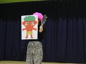 保育者からの出し物「 なんのツノ」では、角をなくした鬼に皆でピッタリの角を探してあげる内容でした。