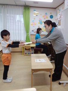 らいおん組さんには、2年に渡りクリーンキッズ活動に取り組んだことを賞して、園長先生より表彰状が送られました。