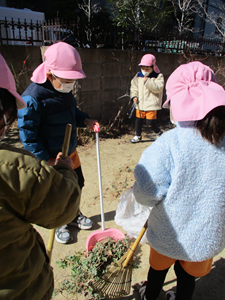熊手やほうき等で一か所に集めたり、火ばさみで挟んでゴミ袋に入れたりと一生懸命お掃除する姿がかっこよかったです!