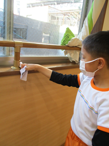 前回の大掃除で“掃除は上から下へ”と伝えていたので、「上からでしょうか?下からでしょうか?」と聞くと「上から!前言ってたもん!」と覚えていたお友達もいましたよ(^▽^)