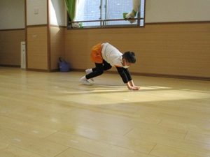転ばない範囲で勢いよく進んだり、ゆっくり進んだり、スピードを調節しながら取り組んだらいおん組さん♪